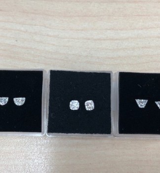 Prices are for the pair Half Moon $799 Cushion shape $1020 Brilliant Trapezoids $935